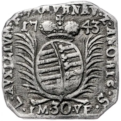 | Obverse lettering | L . AVXILIUM . F . BRAVHNAV . Z . ANOBIS . S 1743 IM . 30 . VF |