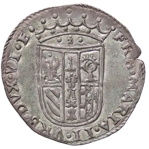 | Obverse lettering | · FRA · MARIA · II · VRB · DVX · VI · E (Translation: Francis Maria II, sixth Duke of Urbino, etc.) |