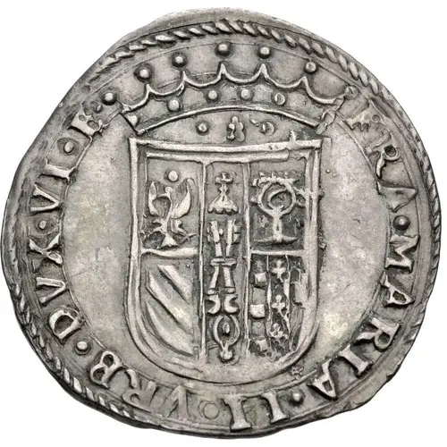 | Obverse lettering | · FRA · MARIA · II · VRB · DVX · VI · E (Translation: Francis Maria II, sixth Duke of Urbino, etc.) |