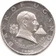 Horizontal dashed circle around bust of Pope Paul VI facing right, Basilica of the Uganda Martyrs in Namugongo, Uganda at right, coat of arms of Vatican at left. Dotted circle around the rim. |