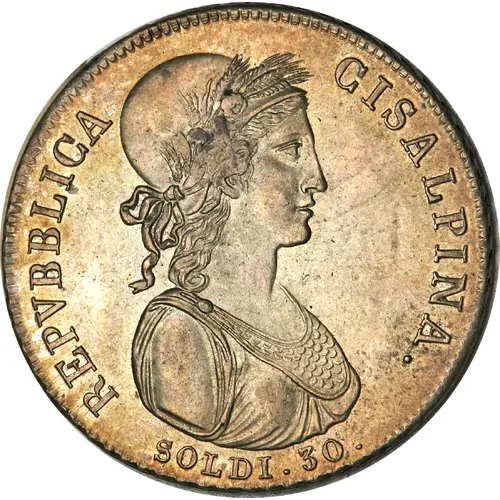 | 表面の銘文 | REPUBBLICA CISALPINA SOLDI. 30 |