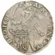| Reversbeschreibung | Armored knight standing to left with head right, holding curved sword in right hand, behind crowned coat of arms of Deventer. Privy mark (dog) to right of foot |