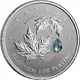 Set against a matte field, the reverse design features two sugar maple (Acer saccharum) leaves floating in the wind and positioned in a way that suggests a circular motion. The engraved design is embellished with a 0.23-carat, AAA-grade, pear-shaped, rose-cut aquamarine gemstone, which stands in for a sparkling water droplet. |