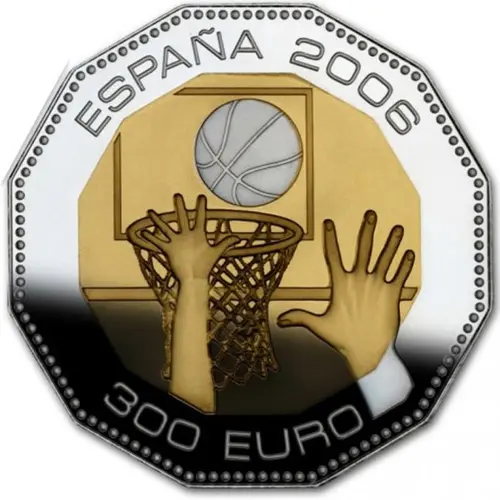 | Reverse description | On the reverse, the image of a player of the Spanish Basketball Team is reproduced, in the attitude of dunk a ball. Above it, the silver image of a ball is inserted, coinciding with the ball on the front. |