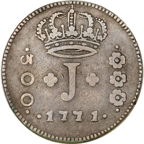 | Obverse description | J between flowers topped by royal crown. Value and date between dots. |