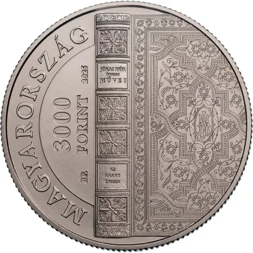 | Legenda do anverso | MAGYARORSZÁG 3000 FORINT 2025 BP. JÓKAI MÓR ÖSSZES MŰVEI AZ ARANY EMBER |