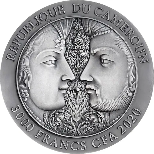| Obverse description | Couple making eye contact within circle. |