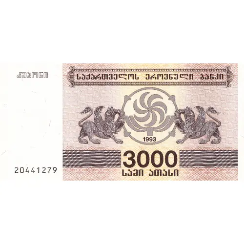 კუპონი საქართველოს ეროვნული ბანკი 1993 3000 სამი ათასი (Translation: Kuponi National Bank of Georgia, Three Thousand) |