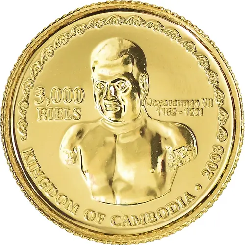 | Obverse lettering | 3000 RIELS JAYAVARMAN VII 1162 - 1201 KINGDOM OF CAMBODIA 2003 |