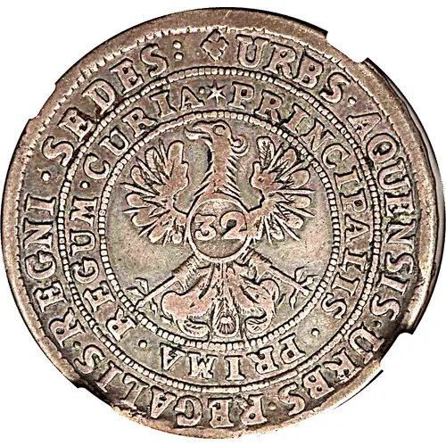 | Obverse lettering | URBS.AQUENSIS.URBS.REGALIS.REGNI.SEDES: PRINCIPALIS.PRIMA.REGUM.CURIA. |