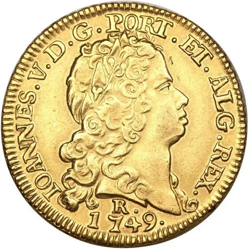 | Obverse lettering | IOANNES. V. D. G. PORT. ET. ALG. REX. R. 1749. (Translation: João V, by the Grace of God, King of Portugal and Algarves.) |
