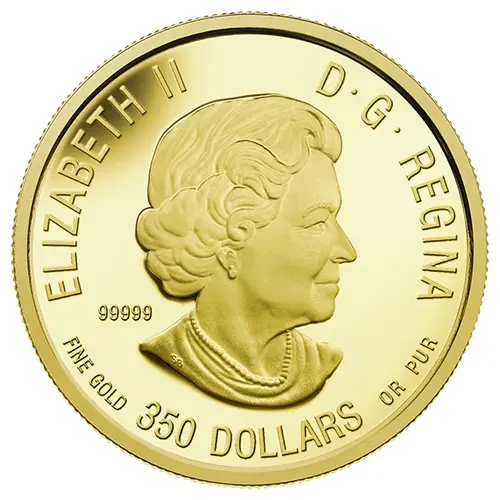 | نوشتههای روی سکه | ELIZABETH II D•G•REGINA 99999 SB FINE GOLD 350 DOLLARS OR PUR (Translation: Elizabeth II Queen by the grace of God) |