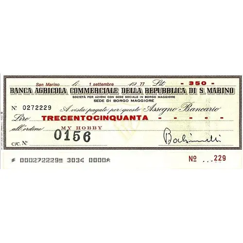 350 Lire Small cheque