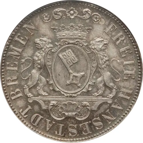 Artistry: The coin's design adheres to the traditional heraldic numismatic style of German city-states. It prominently features the historic Bremen coat of arms—a silver key beneath a crown—on the obverse, symbolizing the city's ecclesiastical origins and Imperial City status. The reverse typically displays the denomination and date, often encircled by a laurel or oak wreath. While no specific engraver is universally attributed, the craftsmanship reflects a precise, functional aesthetic, prioritizing clear legibility and civic identity.