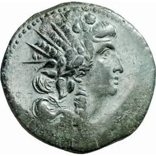 | توضیحات روی سکه | Radiate draped bust of Dionysus, with ivy wreath, right. |