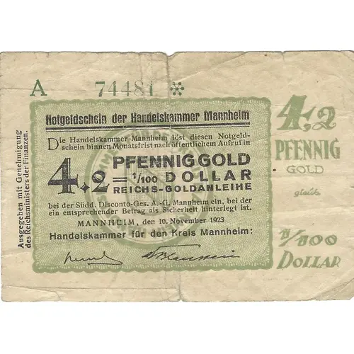 | Value | 4.2 Pfennig = 1 US-Cent (0.042) |