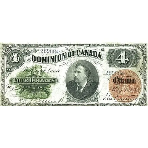 FOUR FOUR - FOUR FOUR FOUR IV FOUR 4 FOUR IV FOUR - DOMINION - OF CANADA - FOUR IV FOUR 4 FOUR IV FOUR IV - FOUR - 4 4 FOUR FOUR 4 FOUR FOUR - FOUR FOUR 4 FOUR FOUR THE DOMINION OF CANADA Will pay to bearer FOUR DOLLARS FOUR FOUR Ottawa May 1st 1882 COUNTERSIGNER - FOR RECEIVER GENERAL 4 FOUR IV FOUR 4 FOUR IV FOUR - FOUR IV FOUR 4 FOUR IV FOUR 4 British American BankNote Co. Montreal |