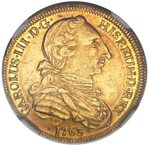 | Obverse lettering | CAROLUS III D G HISP ET IND REX 1763 |