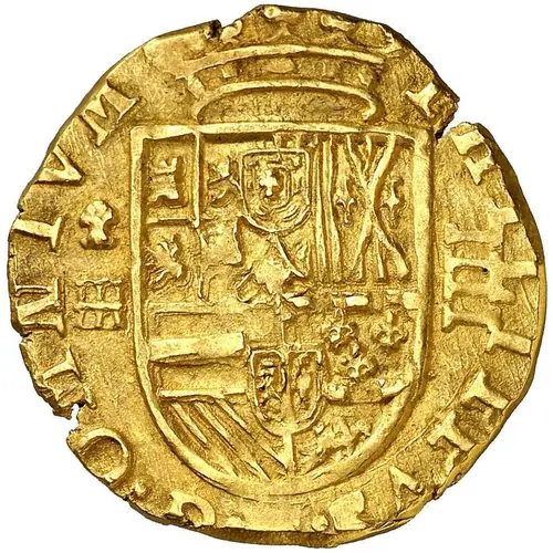 | نوشتههای پشت سکه | HISPAN · REGNORVM · REX · 1597 (Translation: King of all Spanish kingdoms) |