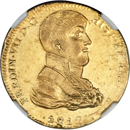 FERDIN•VII•D•G•HISP•ET IND•R •1812• (Translation: Fernando 7th by the grace of God King of Spain and the Indies) |