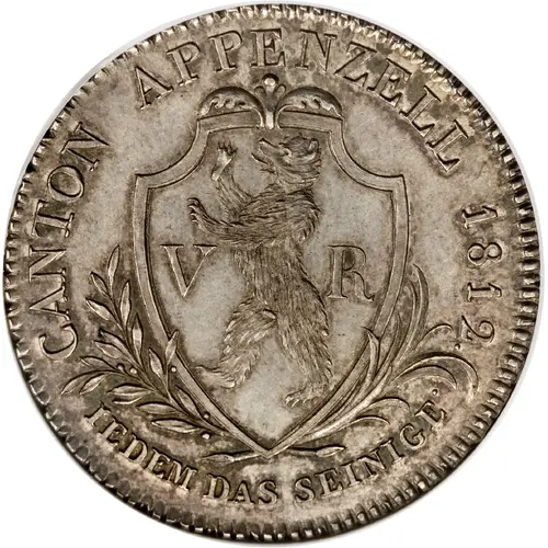 | Надписи аверса | CANTON APPENZELL 1812. V R IEDEM DAS SEINIGE |