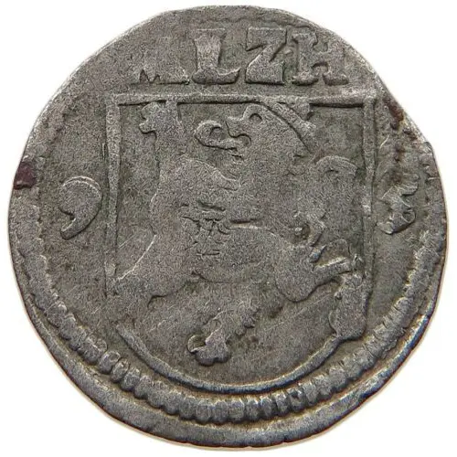 Obverse description Crowned Hessian lion to left in Spanish shield divides date, MLZH above.