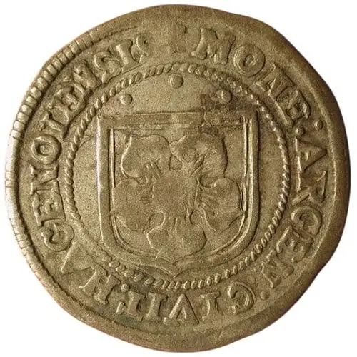 MONE ARGEN CIVIT HAGENOIENSIS (Translation: Silver coinage of the city of Haguenau.) |