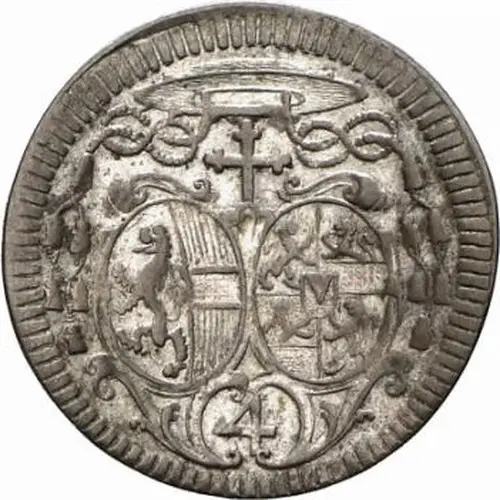 | Descripción del anverso | Archbishop`s hat and cross over two oval ornate shields, left the arms of Salzburg and Austria, right the Archbishop. Value below in a circle. |