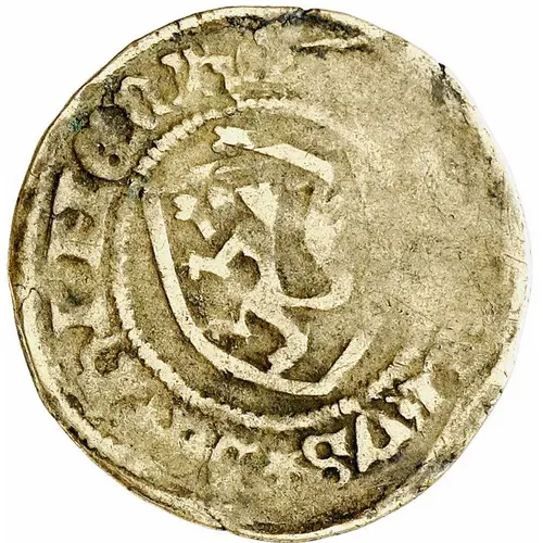 Obverse description Coat of arms with rampant lion to the left.
