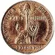 Seated woman (Liberty) with symbols of peace (olive branch) and justice (sword and scales) with year of issue below |