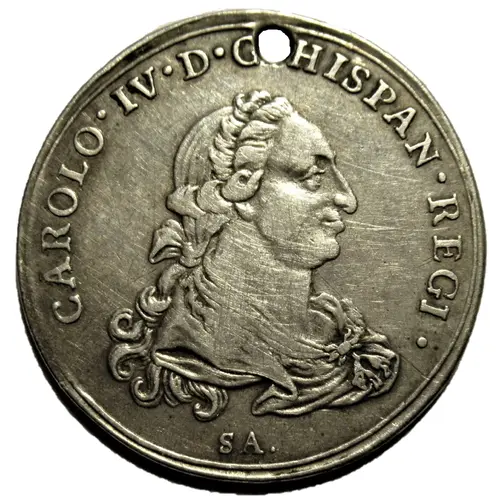 CAROLO• IV•D•G• HISPAN•REGI• S A • (Translation: Carlos IV King of Spain. SA) |