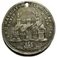 View of the port of Malaga, defended by an extensive fortress and topped by two towers with the patrons of the city; a ship in front. Legend above with the motto: `Tanto Monta`. |