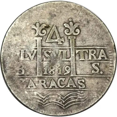 | Opis líce | 4 PLV SVL TRA B 1818 S CARACAS (Translation: 4 Reales Further beyond 1818 BS Carcas) |