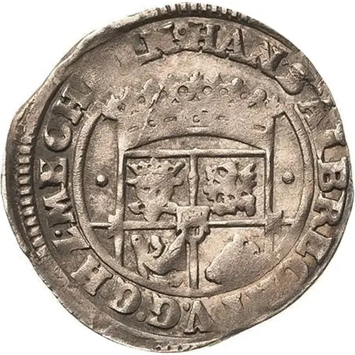 | 表面の説明 | Crowned four-fold arms with central shield divide date, titles of Johann Albrecht II. |