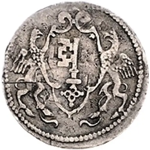 | Obverse description | Ornate shield of city arms supported by 2 griffins. |