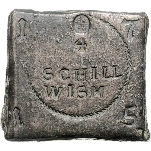 | Obverse description | 3-line central inscription with city arms above. Date in corners. |
