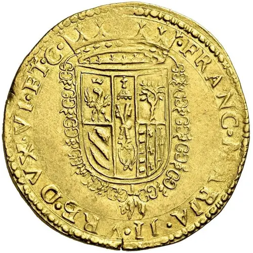 | Reverse description | Oak tree (della Rovere coat of arms) with city view in background. Inscription in exergue with oak sprig and acorn beneath. |
