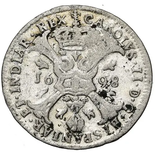 Historical Context: This 4 Stivers coin was issued by the County of Flanders during the final years of Charles II's reign (1665-1700), the last Habsburg monarch of Spain and its vast empire, including the Spanish Netherlands. Struck between 1698 and 1700, it represents a period of significant political and economic instability for the Spanish crown, marked by ongoing conflicts and the looming succession crisis that would culminate in the War of the Spanish Succession. This billon coinage served as essential fractional currency in a region frequently contested by European powers.