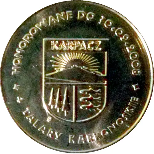 | Obverse description | Coat of arms of Karpacz. Date. Value. |