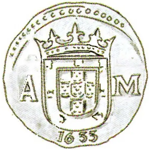 | Obverse description | Crowned Portugal arms with letters at each side, date below. |
