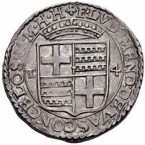 | Obverse lettering | ☩ F • LVD 9 MEND : DE VASCONCELOS • M • M • H • H T 4 (Translation: Fra Luis de Vasconcellos, Grand master of the Hospitallers of Jerusalem.) |