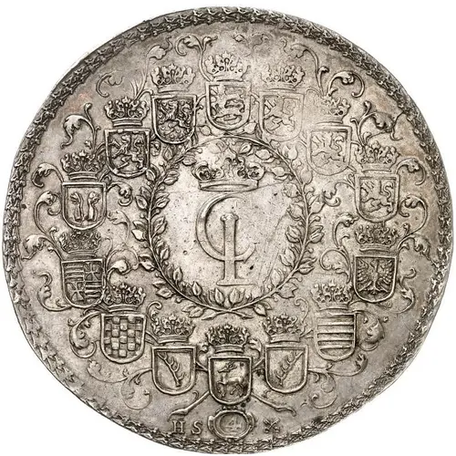| Obverse description | Crowned script CL monogram surrounded by 14 small shields, date in legend, 4 punched in |