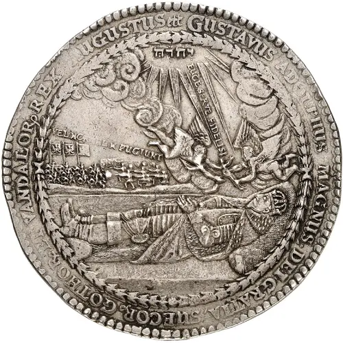 | Obverse description | King Gustav II Adolf lies out of the battlefield, two angels carrying his soul to heaven. |