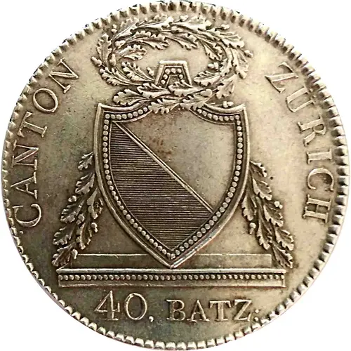 | Obverse lettering | CANTON ZÜRICH 40. BATZ: |
