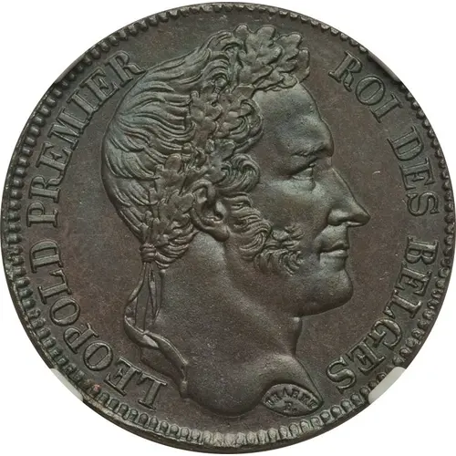 | Obverse lettering | LEOPOLD PREMIER ROI DES BELGES BRAEMT F. (Translation: Leopold the First, King of the Belgians made by Braemt) |
