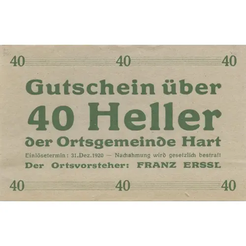 | Value | 40 Hellers (0.4) |