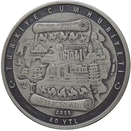 | Obverse lettering | TÜRKİYE CUMHURİYETİ SILK ROAD 2008 40 YTL |