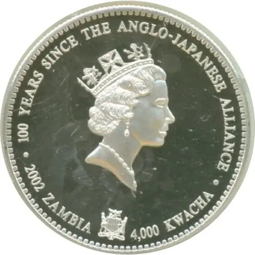 | 正面铭文 | 100 YEARS SINCE THE ANGLO-JAPANESE ALLIANCE 1902 2002 2002 ZAMBIA 4,000 KWACHA |