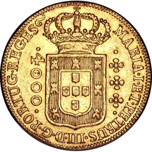 MARIA.I.ET.PETRUS.III.D.G.PORTUG.REGES 4000 (Translation: Maria I and Peter III, by the Grace of God, Regents of Portugal.) |