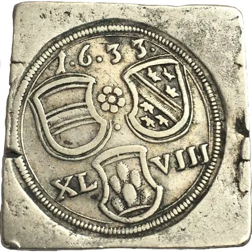 | Obverse description | Date above 3 shields, lower shield divides value: XL-VIII |
